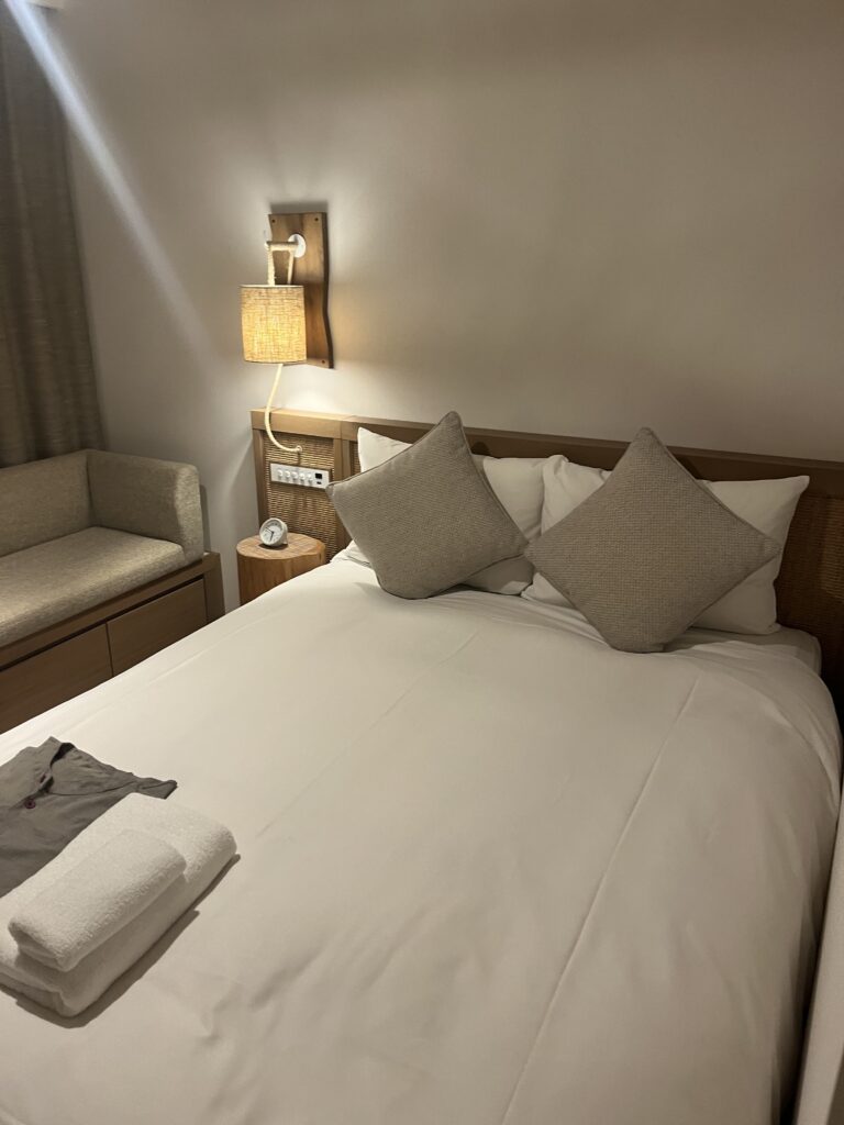 那覇空港に着いたら、バスでホテルへ直行。今回の旅の拠点に選んだのはホテルリソルトリニティ那覇。旭橋・那覇バスターミナルから徒歩圏内で、どこへ行くにもとにかく便利な立地です。